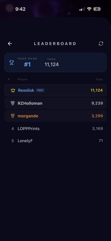 The winner will be the participant with the highest verified tap count on the official in-app leaderboard at the contest end time.